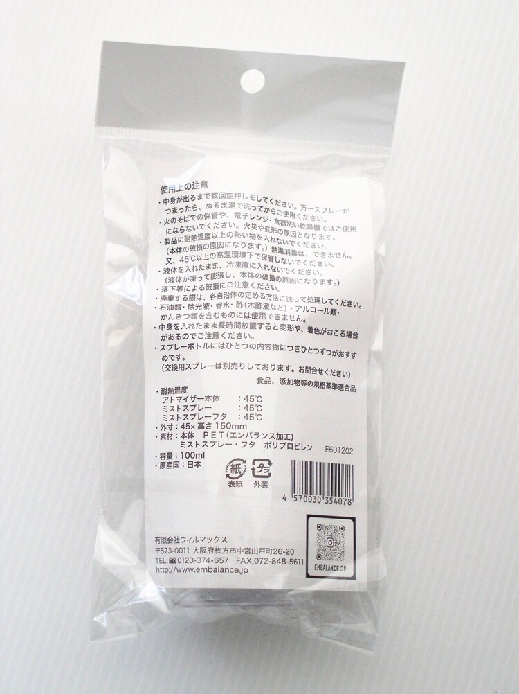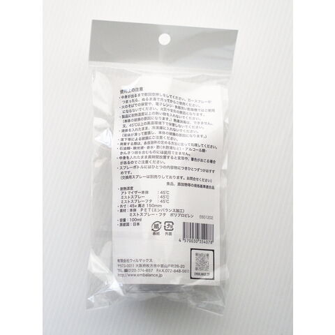 本体:PET(エンバランス加工) ミストスプレー・フタ:ポリプロピレン