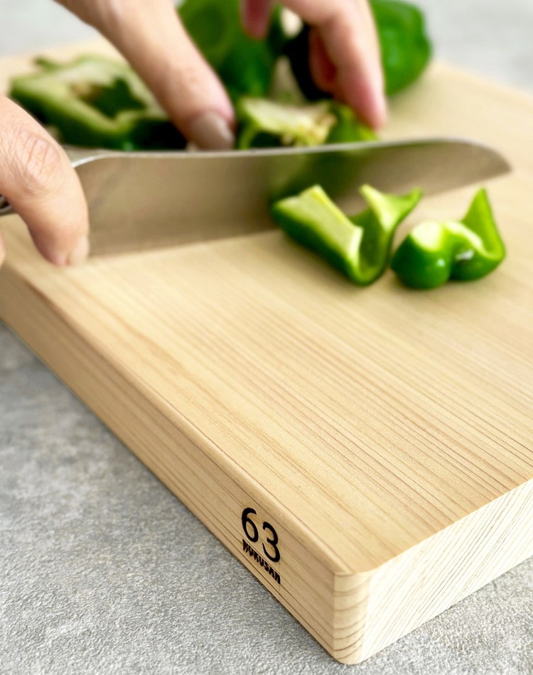 耐久・耐水性に優れたヒノキのまな板です。 御嶽山の岐阜県側で育った「東濃ヒノキ」を使用しています。 職人が目利きした美しい木目が魅力です。 柔らかい刃当たりで軽やかに食材をカットできます。