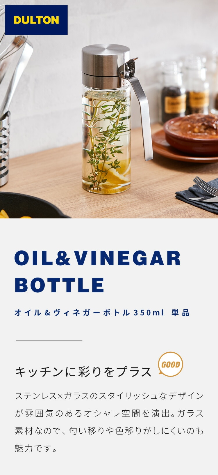 DULTON ダルトン オイルボトル 350ml オイル&ヴィネガーボトル 調味料ボトル ガラス ステンレス 保存容器 調味料ボトル オイル ボトル 調味料入れ おしゃれ【送料無料】