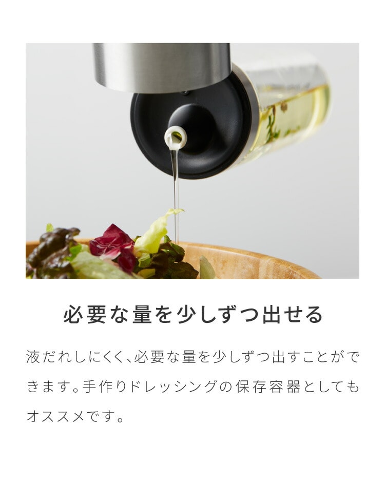 調味料ボトル、オイルボトル、ヴィネガーボトル、ビネガーボトル、液だれしにくい、ボトル、ガラス製、調味料入れ、調味料ポット、オイル、油、酢、ビネガー、ドレッシング、酸化防止、ワンタッチ、開閉、雑貨、ヴィンテージ調、おしゃれ
