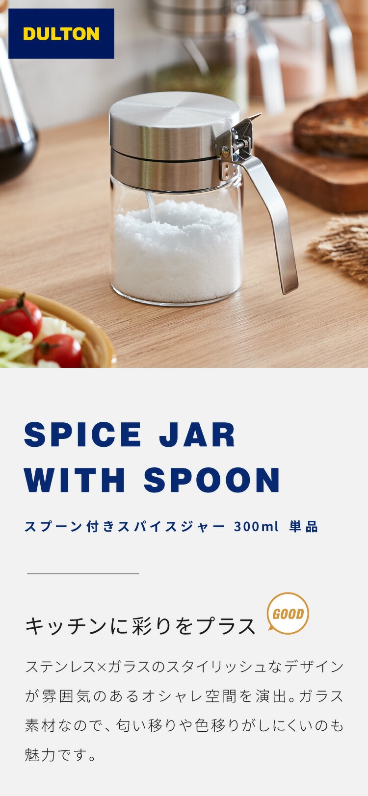 DULTON ダルトン スパイスジャー ウィズ スプーン 300ml 調味料入れ 調味料ポット スプーン付き ガラス ステンレス 保存容器 キャニスター おしゃれ【送料無料】