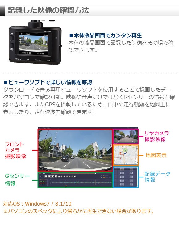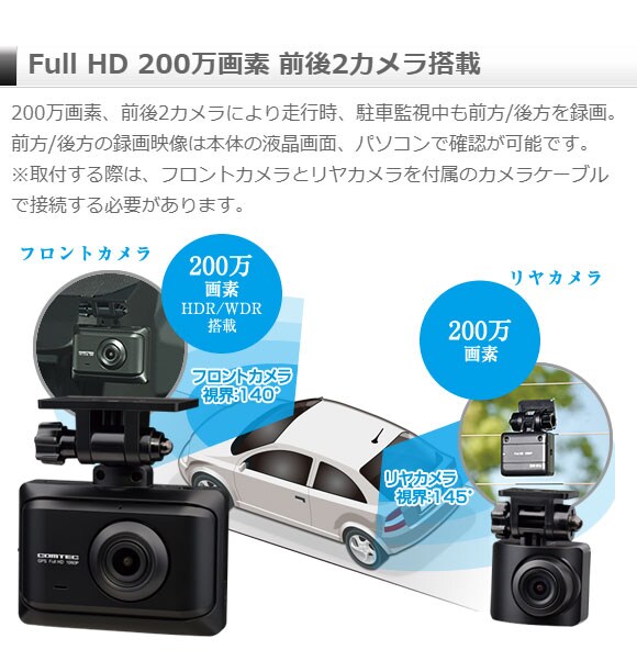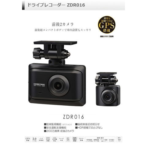 コムテック ドライブレコーダー 前後2カメラ ZDR016 ドラレコ カー用品 GPS搭載 2.0インチ TFT液晶【送料無料】