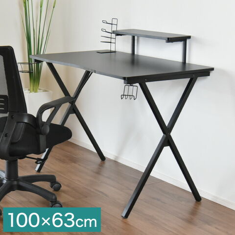 ゲーミングデスク スパーダ モニター台付き 幅100×奥行き63cm コントローラーホルダー ヘッドホンホルダー ドリンクホルダー付き パソコンデスク デスク【送料無料】