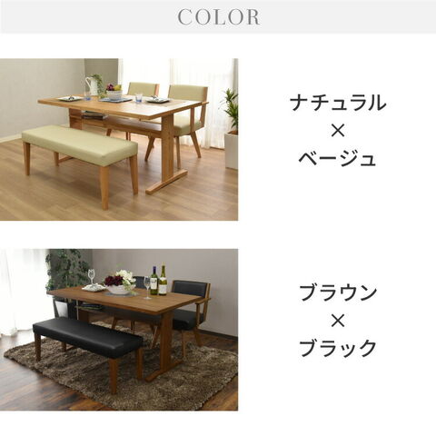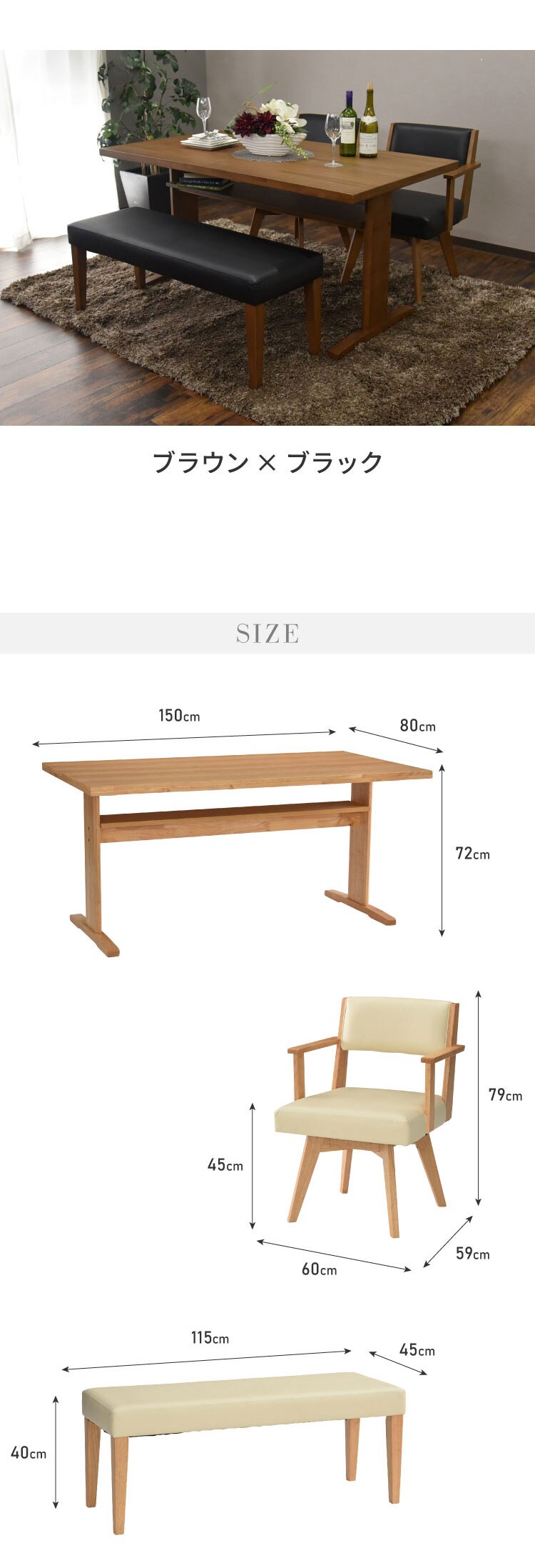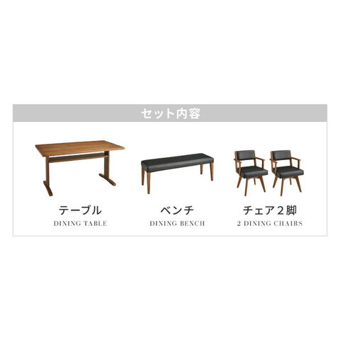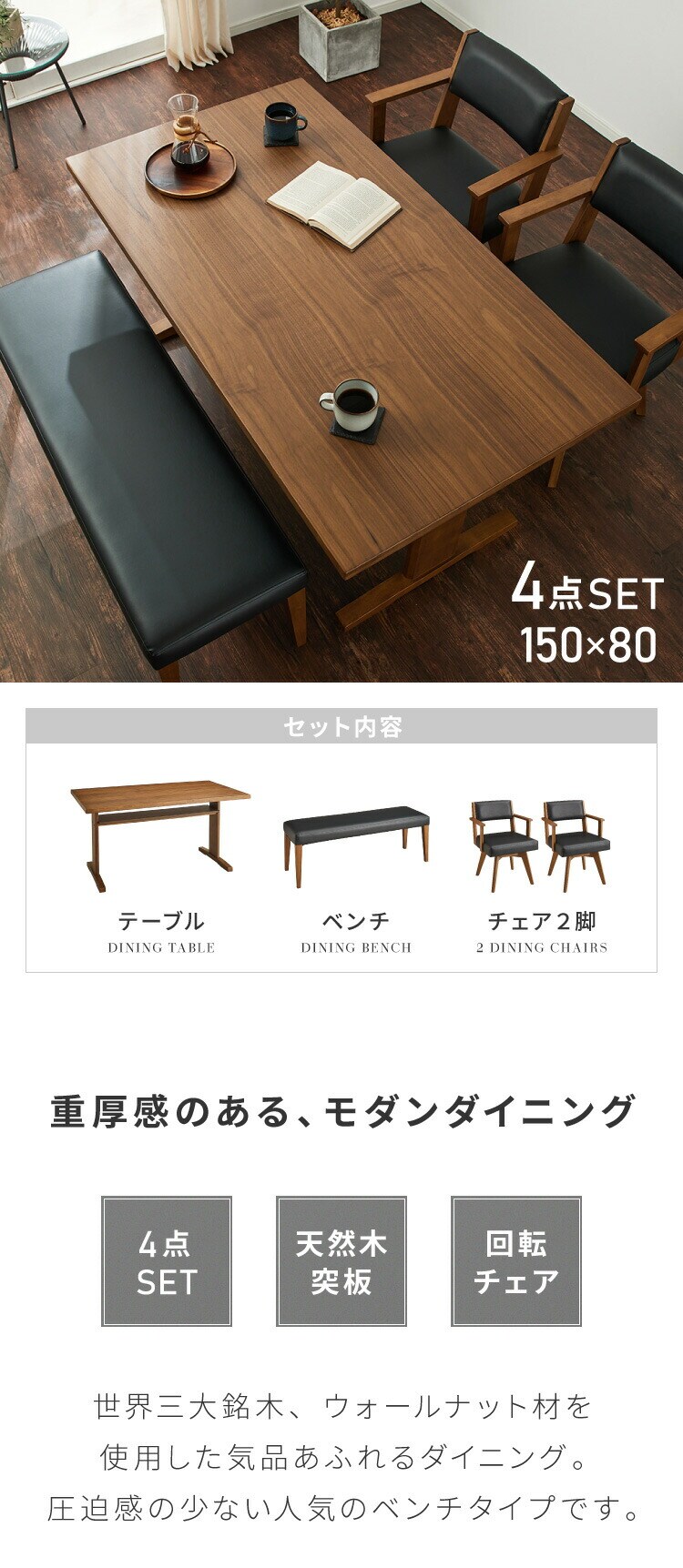 ダイニングセット 150×80cm 4点セット ベンチ チェア チェア2脚 テーブル 棚付き 天然木 ダイニング リビング ブラック シンプル おしゃれ コーディネート ダイニングチェア ダイニングテーブル【送料無料】