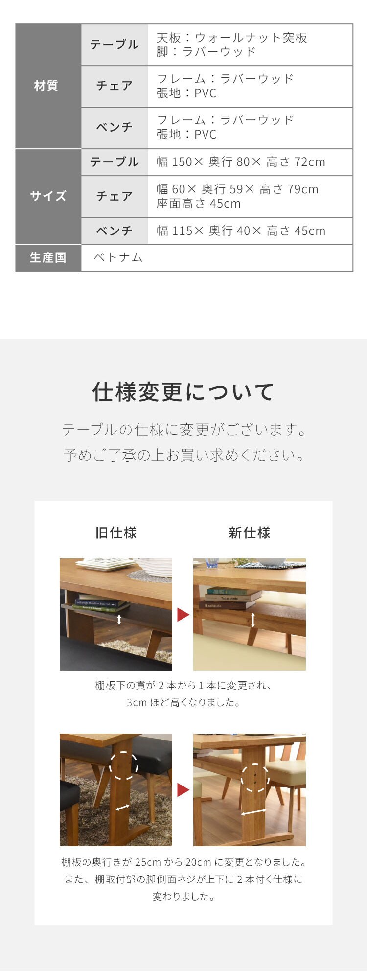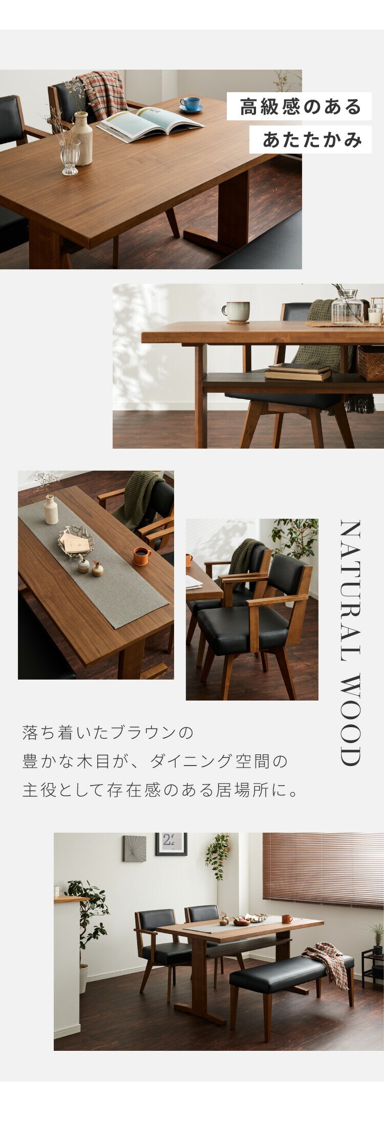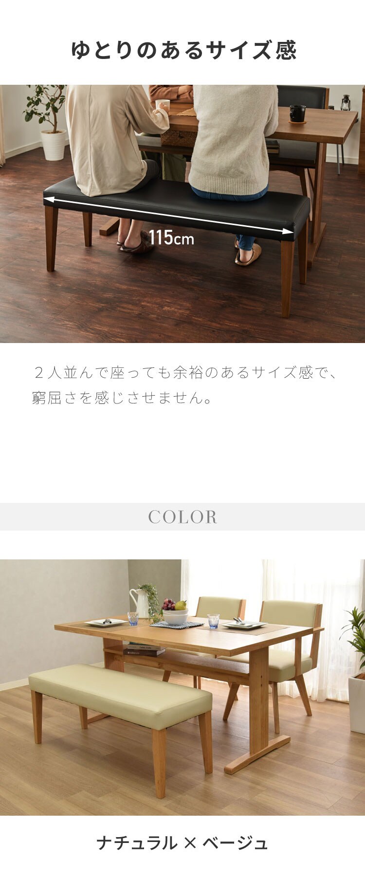 ダイニングセット 150×80cm 4点セット ベンチ チェア チェア2脚 テーブル 棚付き 天然木 ダイニング リビング ブラック シンプル おしゃれ コーディネート ダイニングチェア ダイニングテーブル【送料無料】