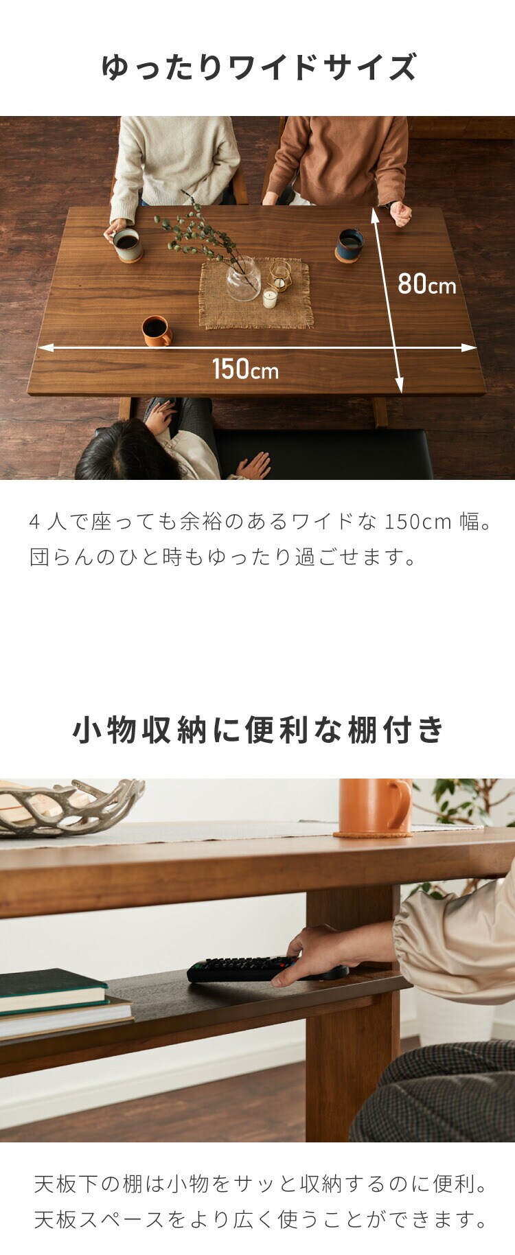 ダイニングテーブル 木製 棚付き 幅150 奥行80 4人掛け テーブル 天然木 リビング ダイニング おしゃれ シンプル ウォールナット パソコンデスク つくえ 机 デスク 食卓テーブル【送料無料】