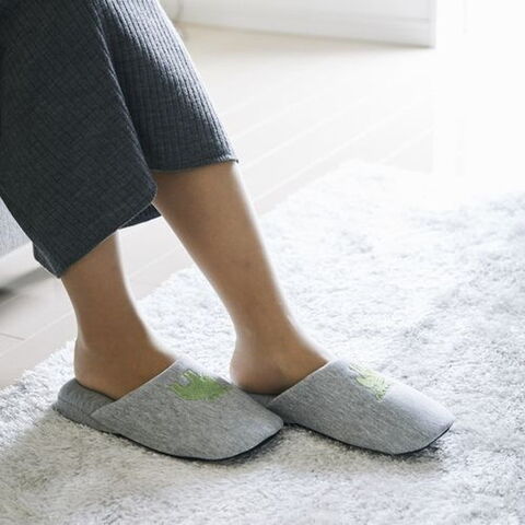 刺繍が施されたニットタイプのスリッパです。