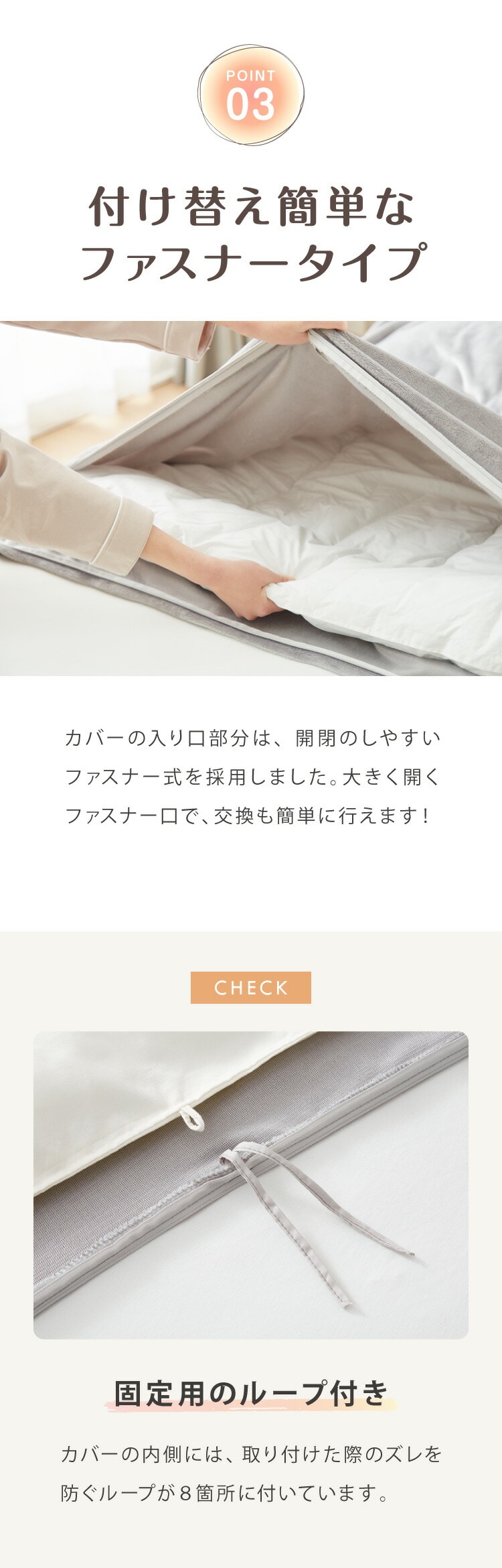 掛け布団カバーは洗濯可能(ネット入れおすすめ)