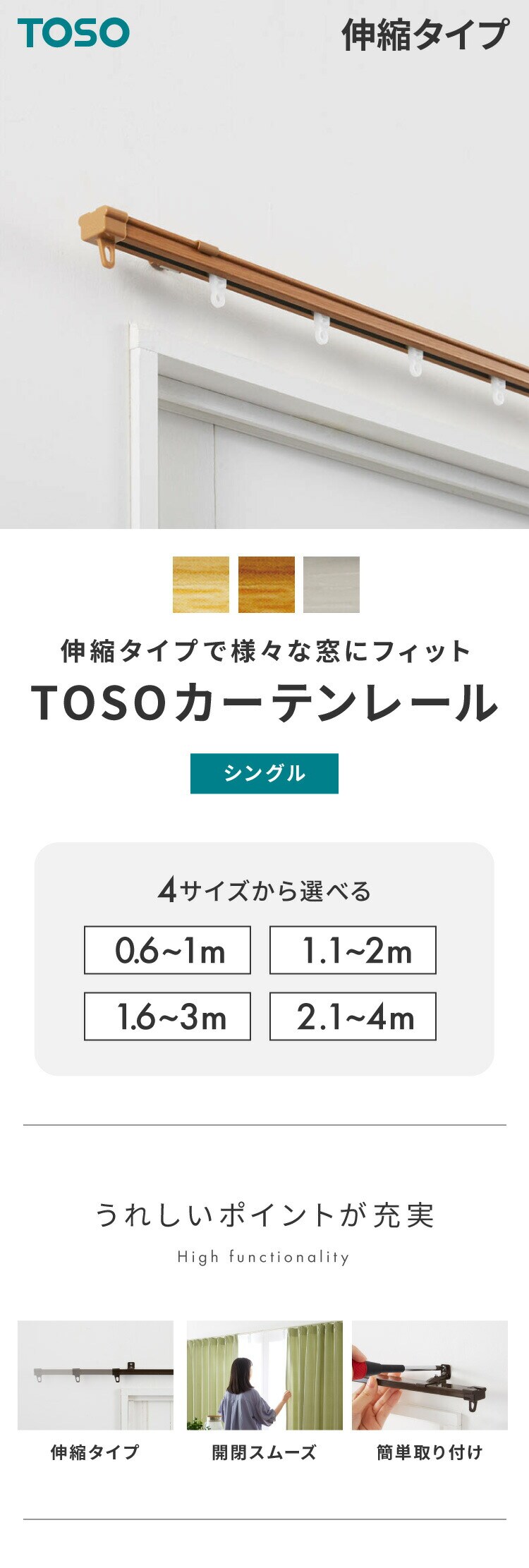 カーテンレール シングル 0.6~1m 1.1~2m 1.6~3m 2.1~4m 木目調 伸縮レール トーソー TOSO AJ606 天井 正面 伸びるレール 北欧 天井付け 簡単取り付け 賃貸 ウッディライト ウッディミディアム ウッディホワイト【送料無料】