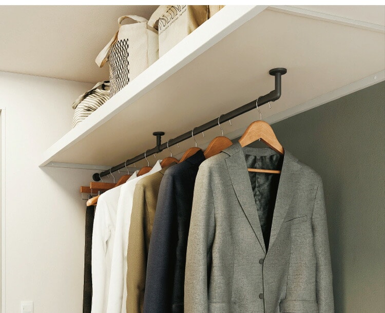 収納バーとして設置することで、お部屋上部の空間を有効的に使い、”見せる収納”が可能です。