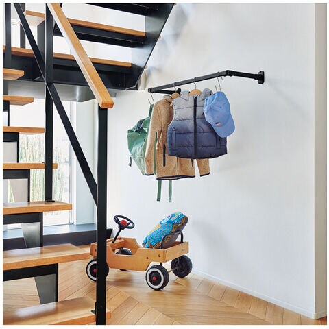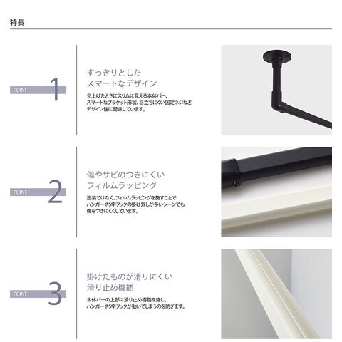 収納バーとして設置することで、お部屋上部の空間を有効的に使い、”見せる収納”が可能です。