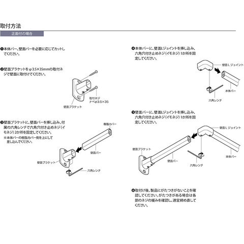 構造用合板(12mm以上)、角材(幅80mm以上(壁面の場合は35mm以上)※木部へのねじ込み深さ17mm以上、野縁(木部:垂直方向、木部へのねじ込み深さ17mm以上)、コンクリート(コンクリート用アンカープラグ使用:別途)に取り付けが可能です。
