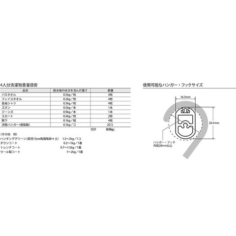 ・吊り下げ物1個あたりの許容加重:3kgまで