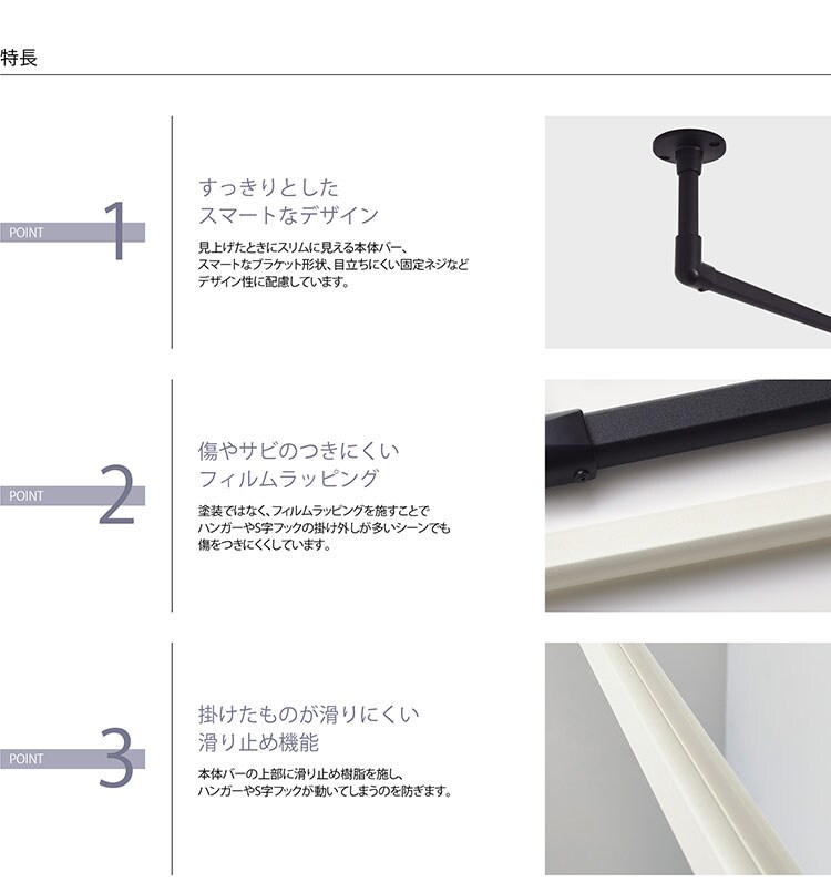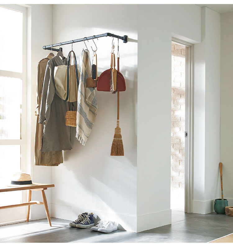収納バーとして設置することで、お部屋上部の空間を有効的に使い、”見せる収納”が可能です。