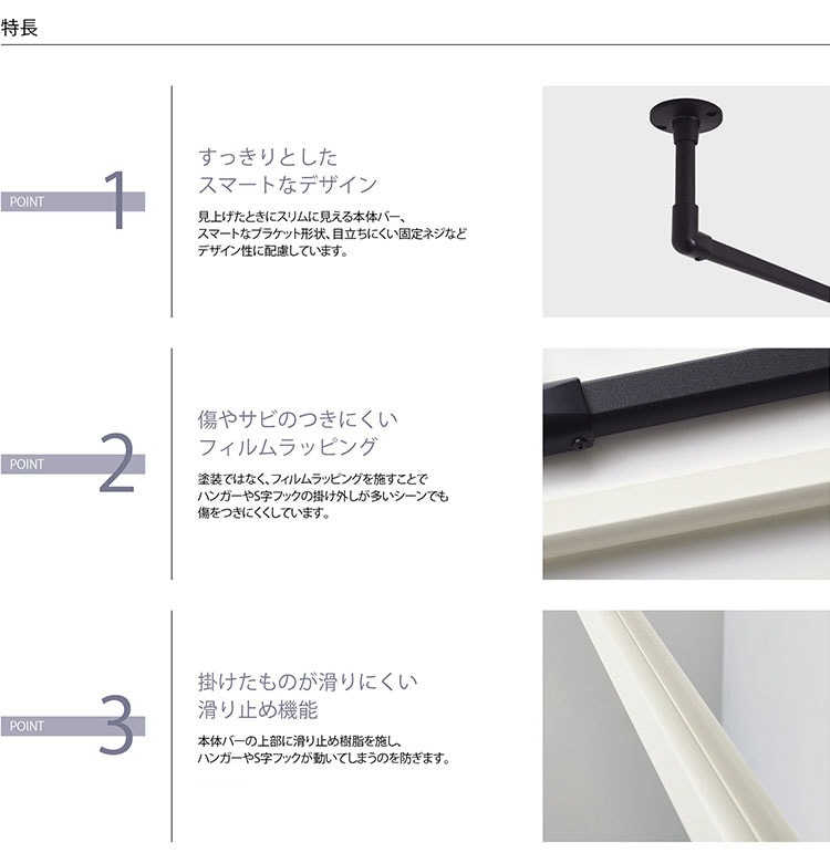 また掛けたものが滑りにくい滑り止め機能付きです。