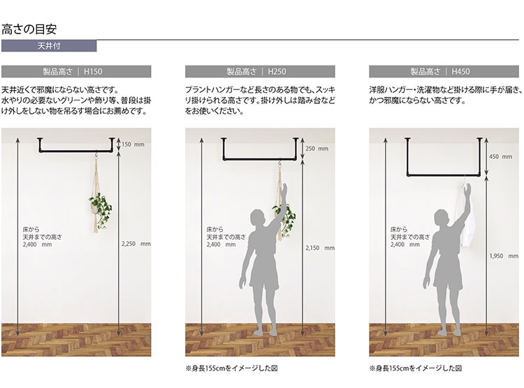 収納バーとして設置することで、お部屋上部の空間を有効的に使い、”見せる収納”が可能です。