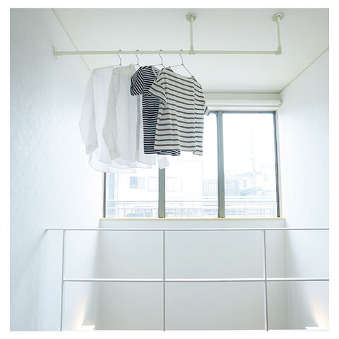 ハンギングバーをランドリーバーとして設置することで、空間を有効に使いつつ日々の家事を効率化できます。共働きのご家庭やPM2.5、花粉対策で洗濯物を室内に干す方にピッタリです。