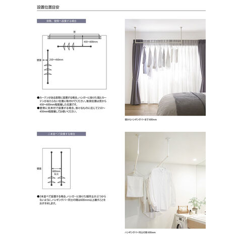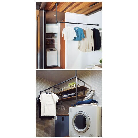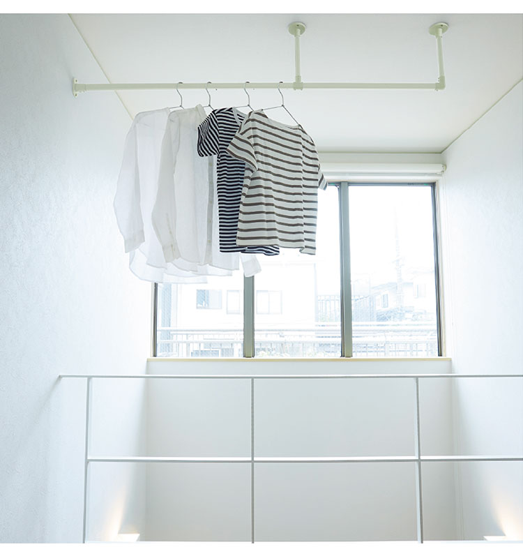 ハンギングバーをランドリーバーとして設置することで、空間を有効に使いつつ日々の家事を効率化できます。共働きのご家庭やPM2.5、花粉対策で洗濯物を室内に干す方にピッタリです。