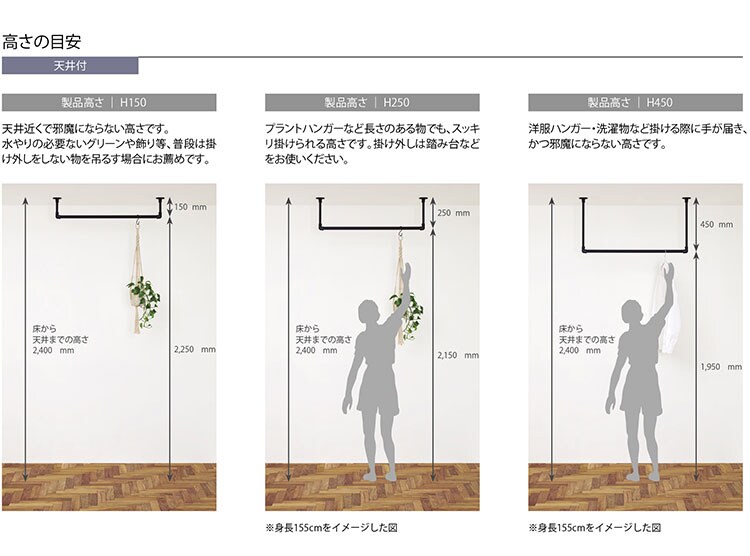 ・吊り下げ物1個あたりの許容加重:3kgまで