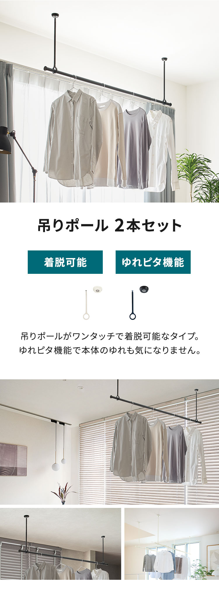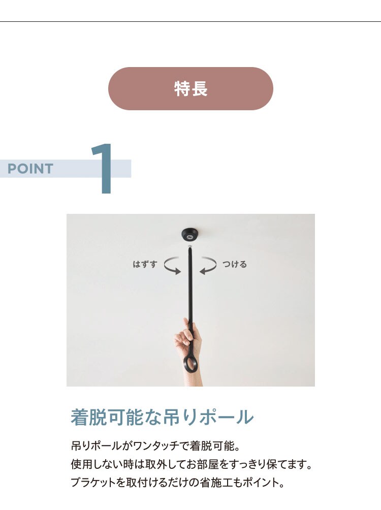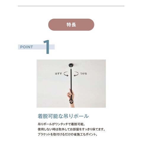 吊ポールがワンタッチで着脱可能です。