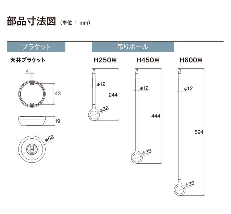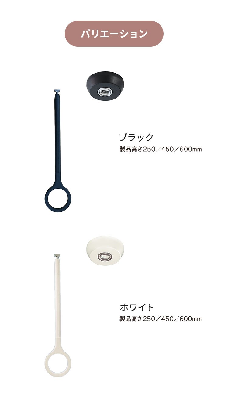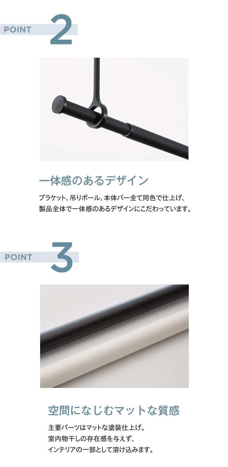 ブラケット、吊りポールを同色で仕上げ、製品全体で統一感を持たせています。