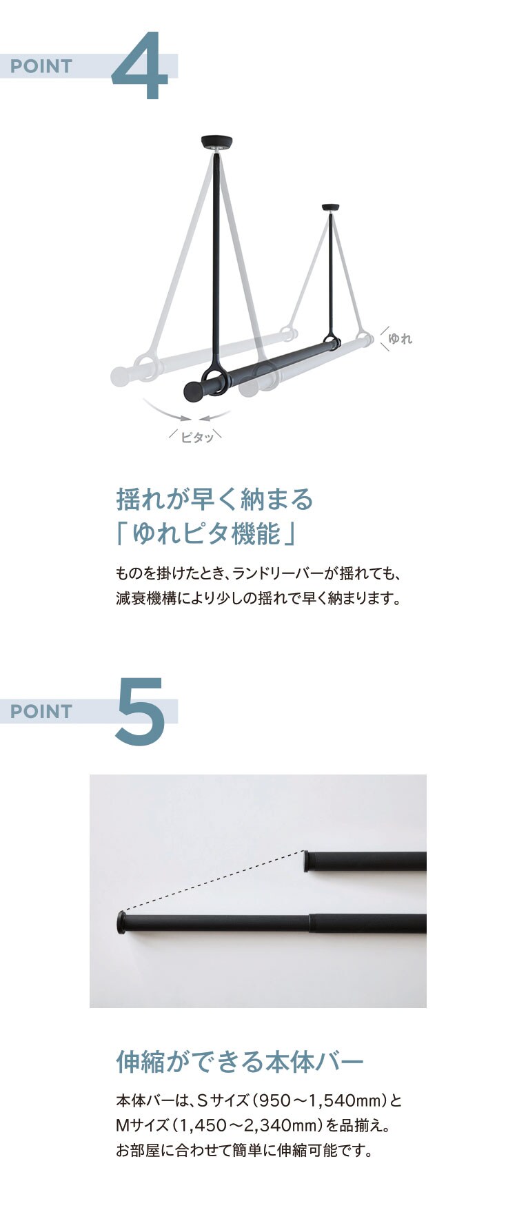 減衰機構により、バーに引っ掛けた時の揺れが早く収まります。