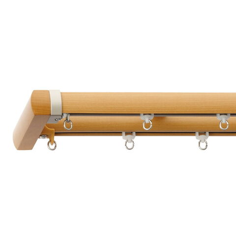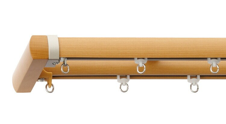 木目調の優しさを生かしたすっきりなラウンドフォルムのカーテンレール。”心地良い”にこだわったベーシックなデザインです。
