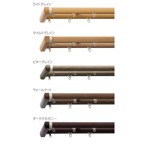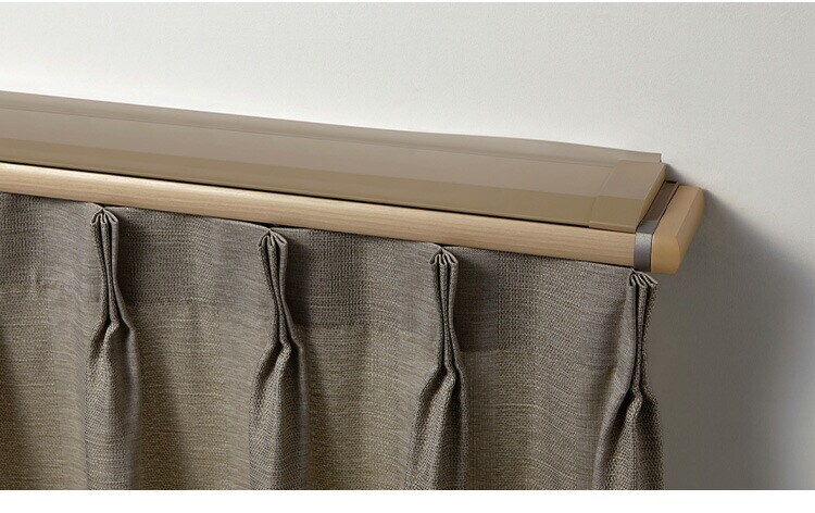 木目調の優しさを生かしたすっきりなラウンドフォルムのカーテンレール。”心地良い”にこだわったベーシックなデザインです。