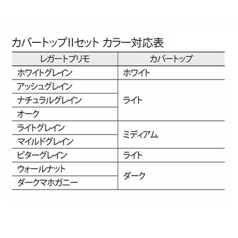 レガートプリモレール(3.03m)1本,レガートプリモキャップ1組,ネクスティ正面付ダブルブラケット3コ,ネクスティランナー56コ,ネクスティマグネットランナー2組,ネクスティレール(3.00m)1本,ネクスティキャップストップ2コ,キャップ一体型リターン金具N2コ,カバートップII(3.01m),カバートップキャップII1組,カバートップ固定クリップII5コ,取付ネジ(ナベ3.5×25mm)