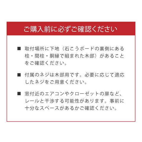 取り付けの際は必ずネジが効く下地があることをご確認ください。下地がない場所への取り付けは落下の恐れがあります。