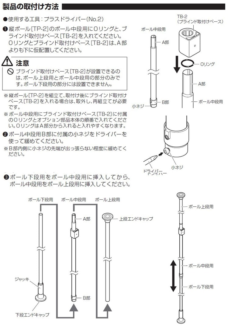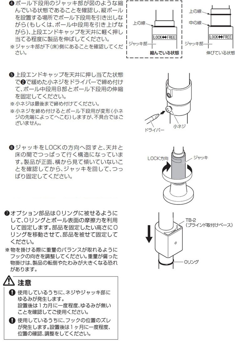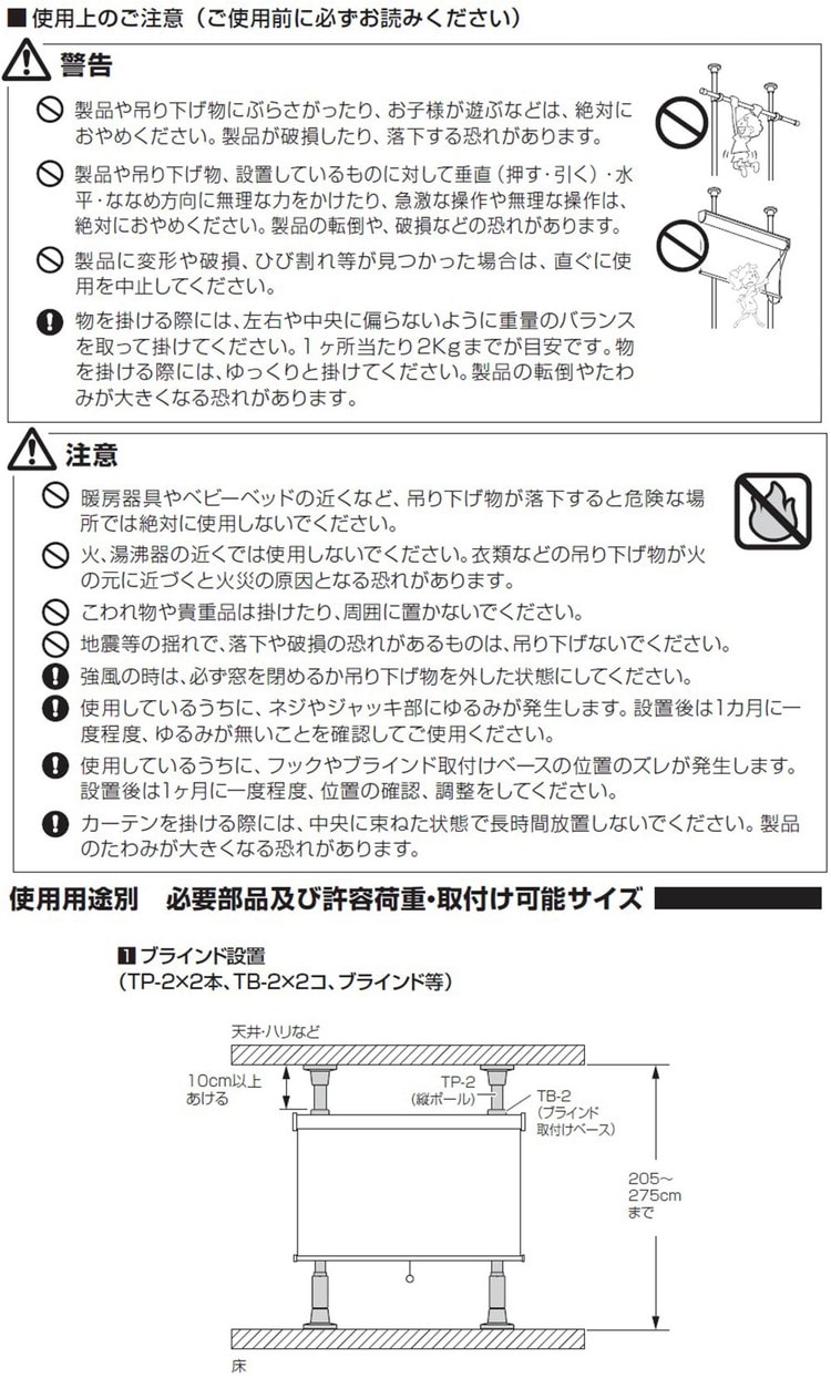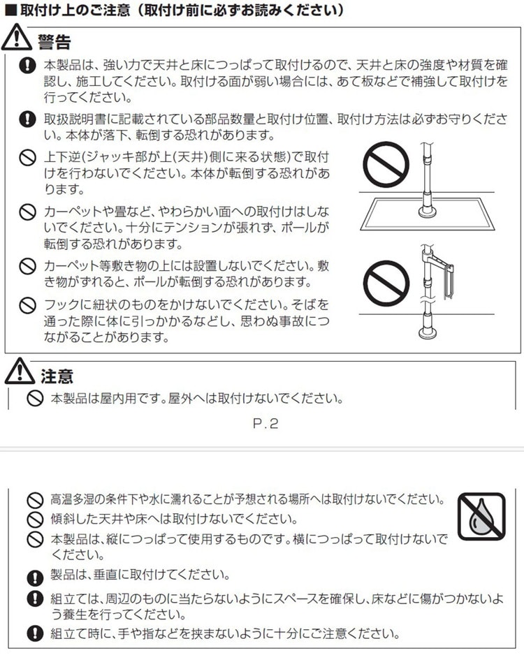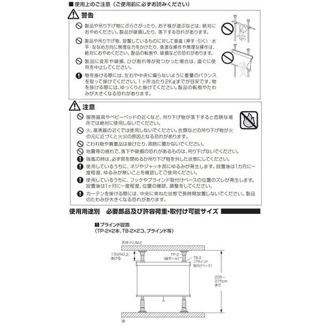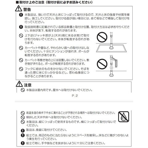 つっぱり棒を設置する際は、必ず取扱説明書をよく読んでから設置してください。
