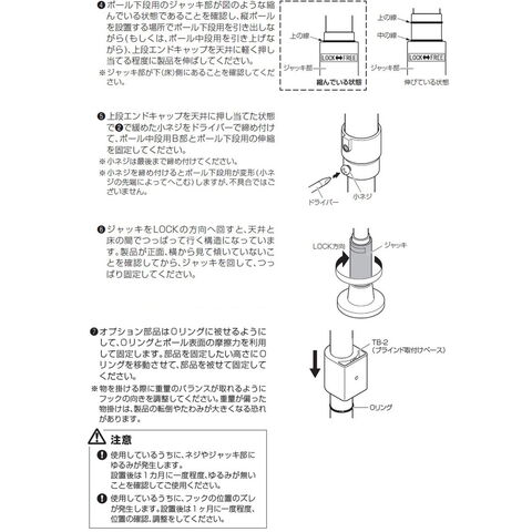・ジャッキ機構を採用したつっぱり棒なので簡単に確実に固定ができます。
