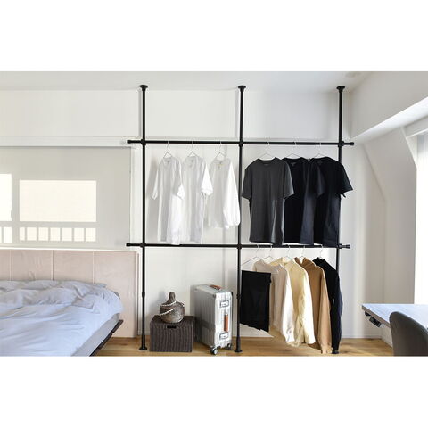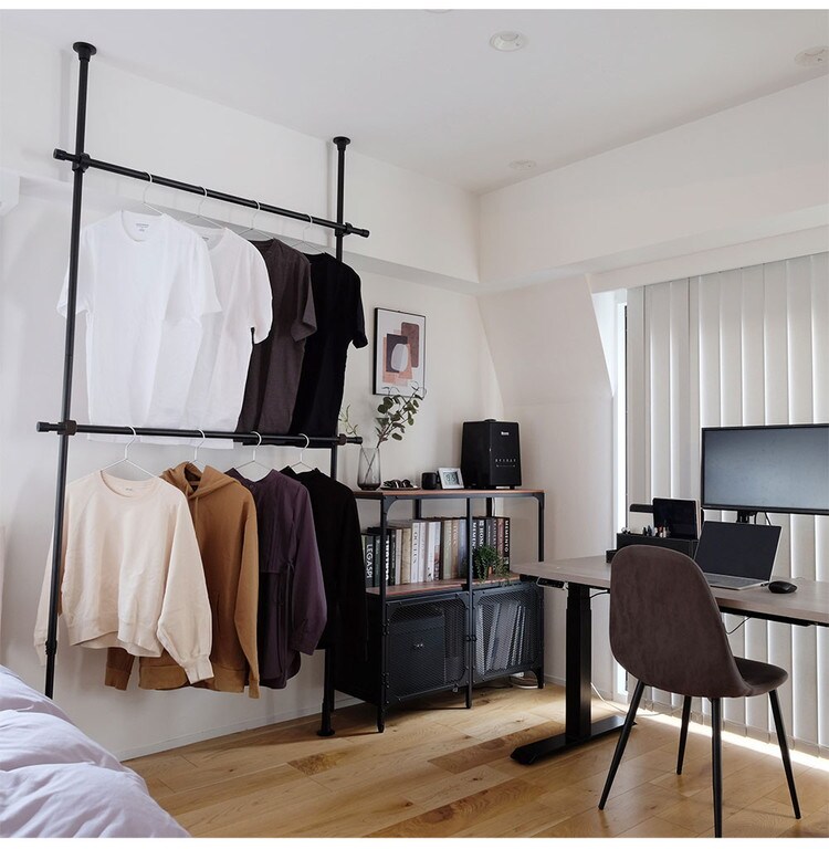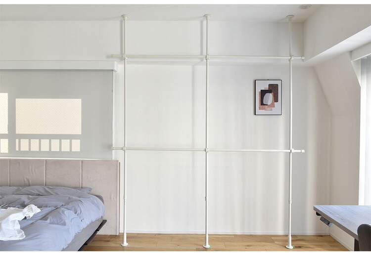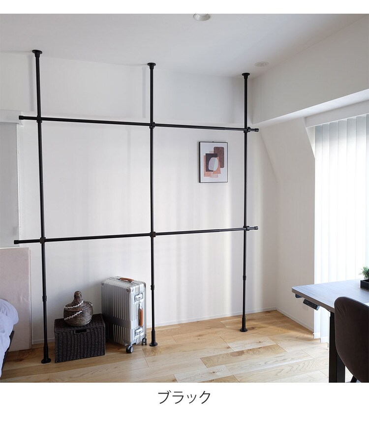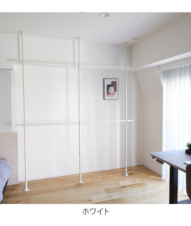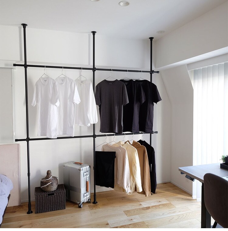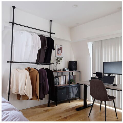 ・縦方向のつっぱり棒と横方向のつっぱり棒を組み合わせて作るハンガーラックです。