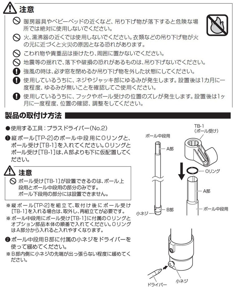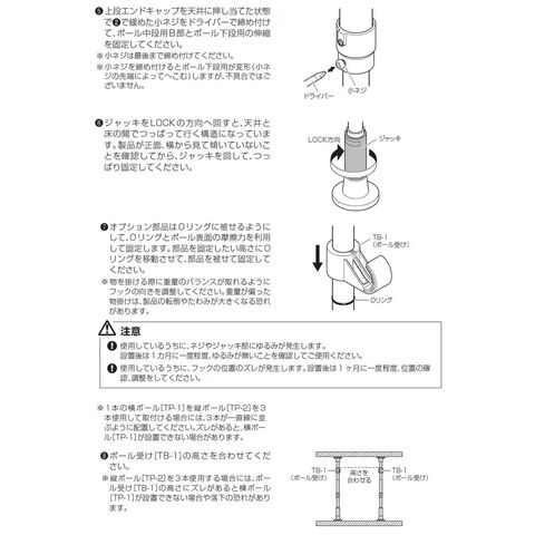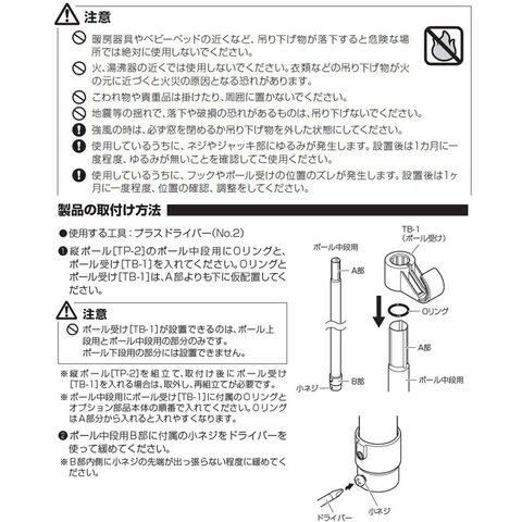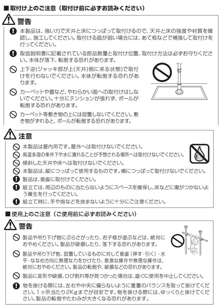 つっぱり棒を設置する際は、必ず取扱説明書をよく読んでから設置してください。