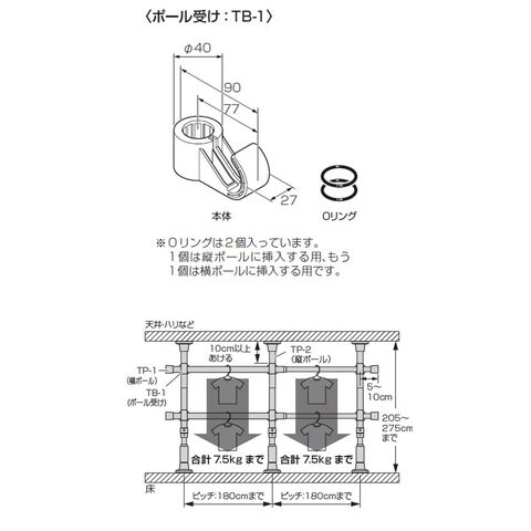 設置後は、安全にご使用いただくために、許容荷重以上のものを吊るさないようご注意ください。※サイズに応じ許容荷重が異なります。