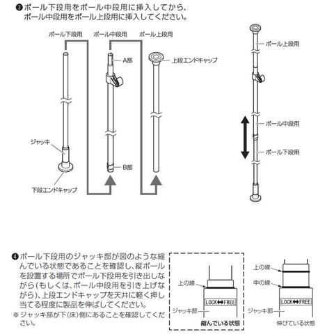 ・ジャッキ機構を採用したつっぱり棒なので簡単に確実に固定ができます。