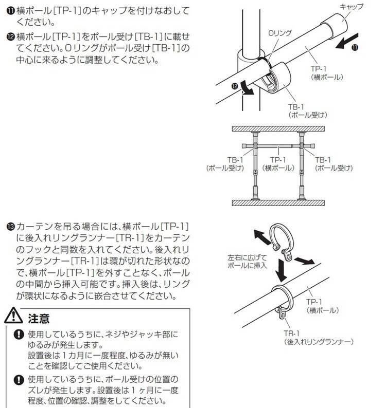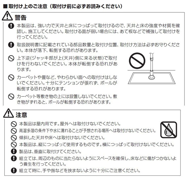 つっぱり棒を設置する際は、必ず取扱説明書をよく読んでから設置してください。