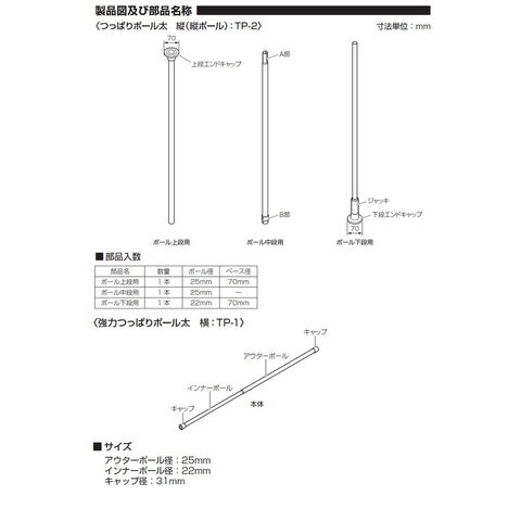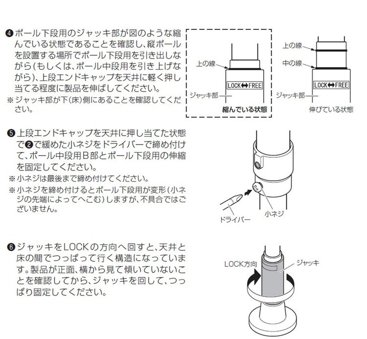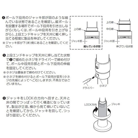 ・ジャッキ機構を採用したつっぱり棒なので簡単に確実に固定ができます。