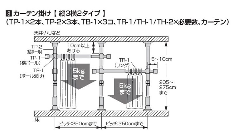 ・縦方向のつっぱり棒と横方向のつっぱり棒を組み合わせて作る簡易的なカーテンポールです。