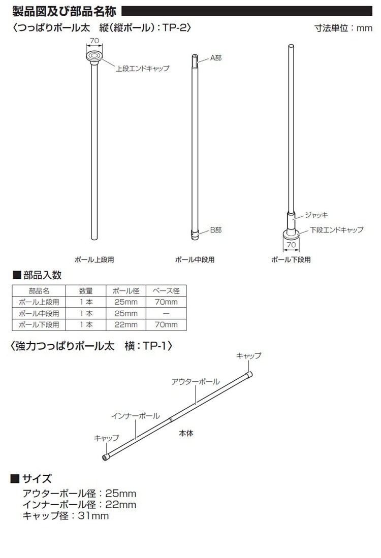 ・ジャッキ機構を採用したつっぱり棒なので簡単に確実に固定ができます。