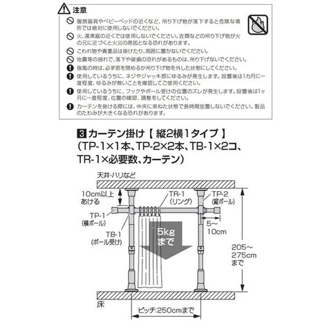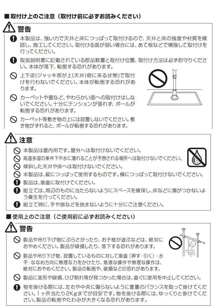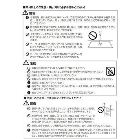 つっぱり棒を設置する際は、必ず取扱説明書をよく読んでから設置してください。