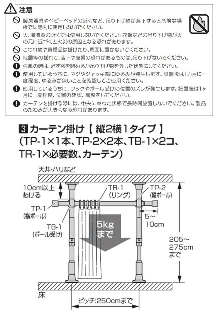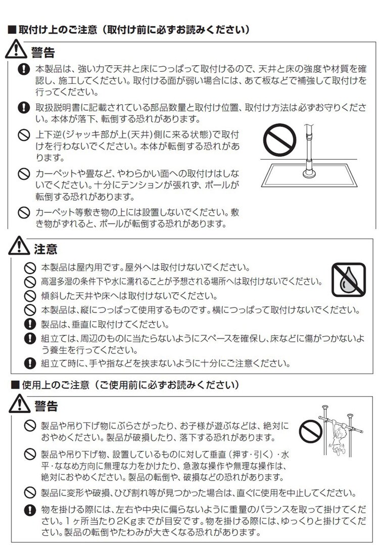 つっぱり棒を設置する際は、必ず取扱説明書をよく読んでから設置してください。