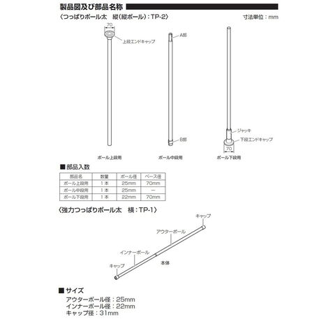 ・ジャッキ機構を採用したつっぱり棒なので簡単に確実に固定ができます。