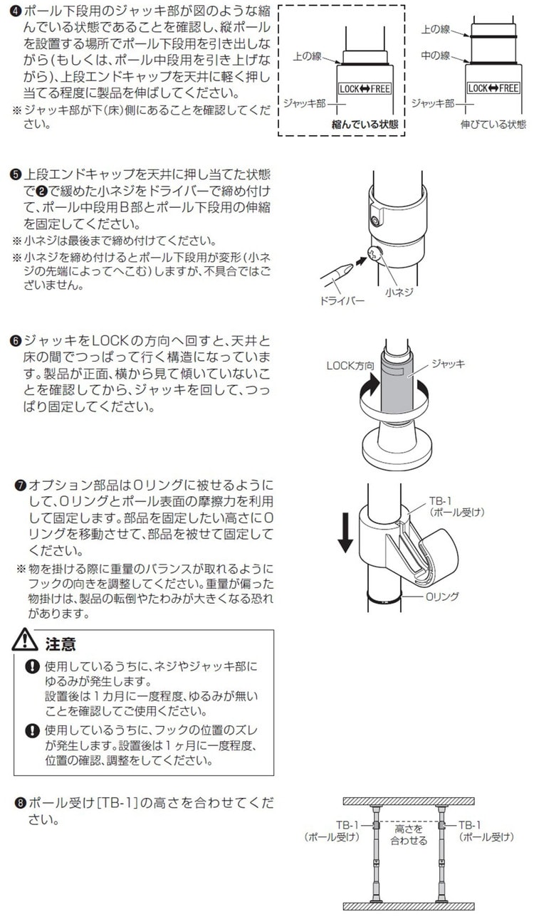 つっぱり棒を設置する際は、必ず取扱説明書をよく読んでから設置してください。
