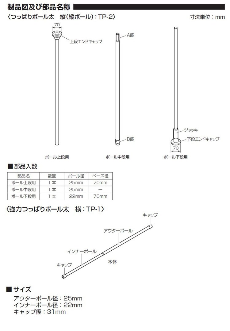 ・ジャッキ機構を採用したつっぱり棒なので簡単に確実に固定ができます。