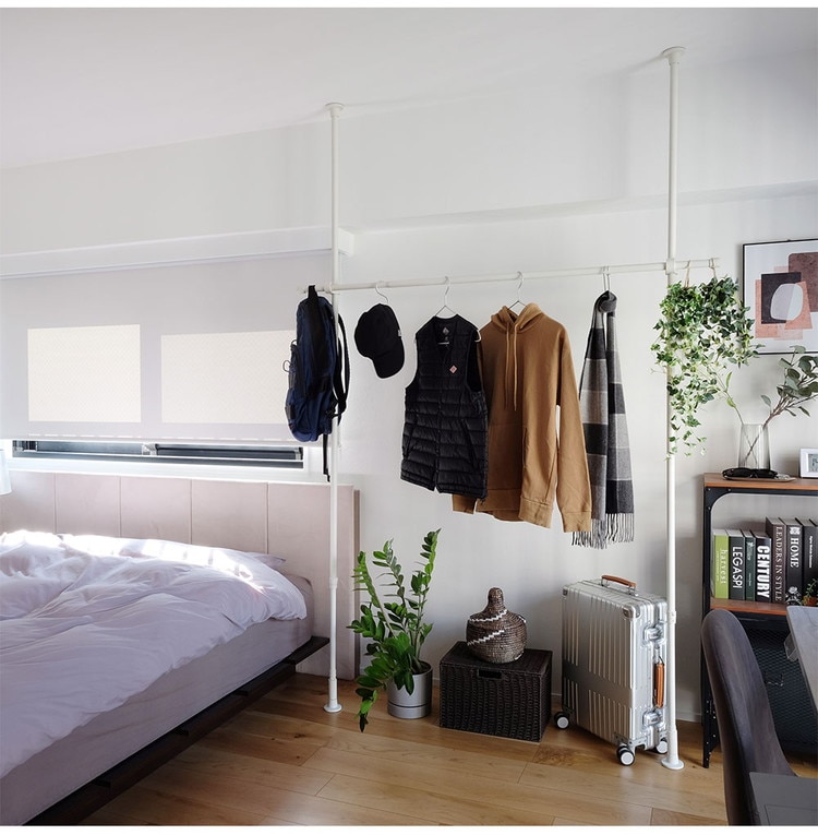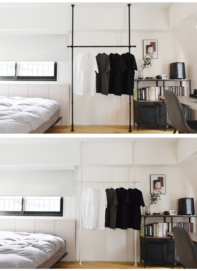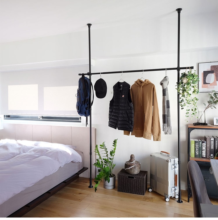 ・縦方向のつっぱり棒と横方向のつっぱり棒を組み合わせて作るハンガーラックです。