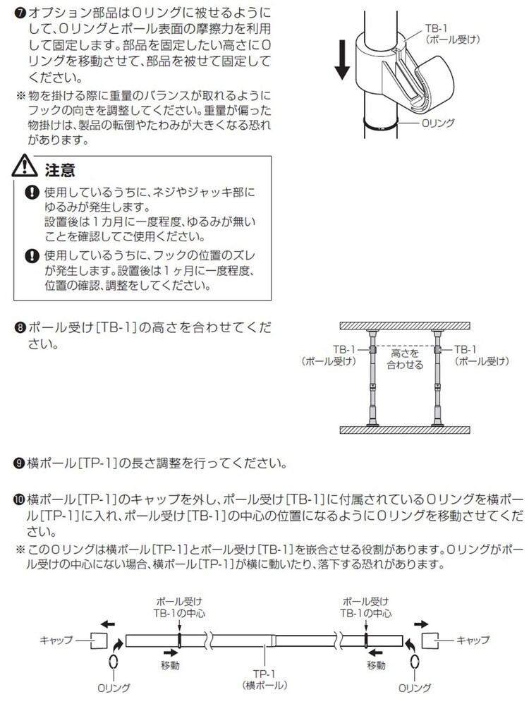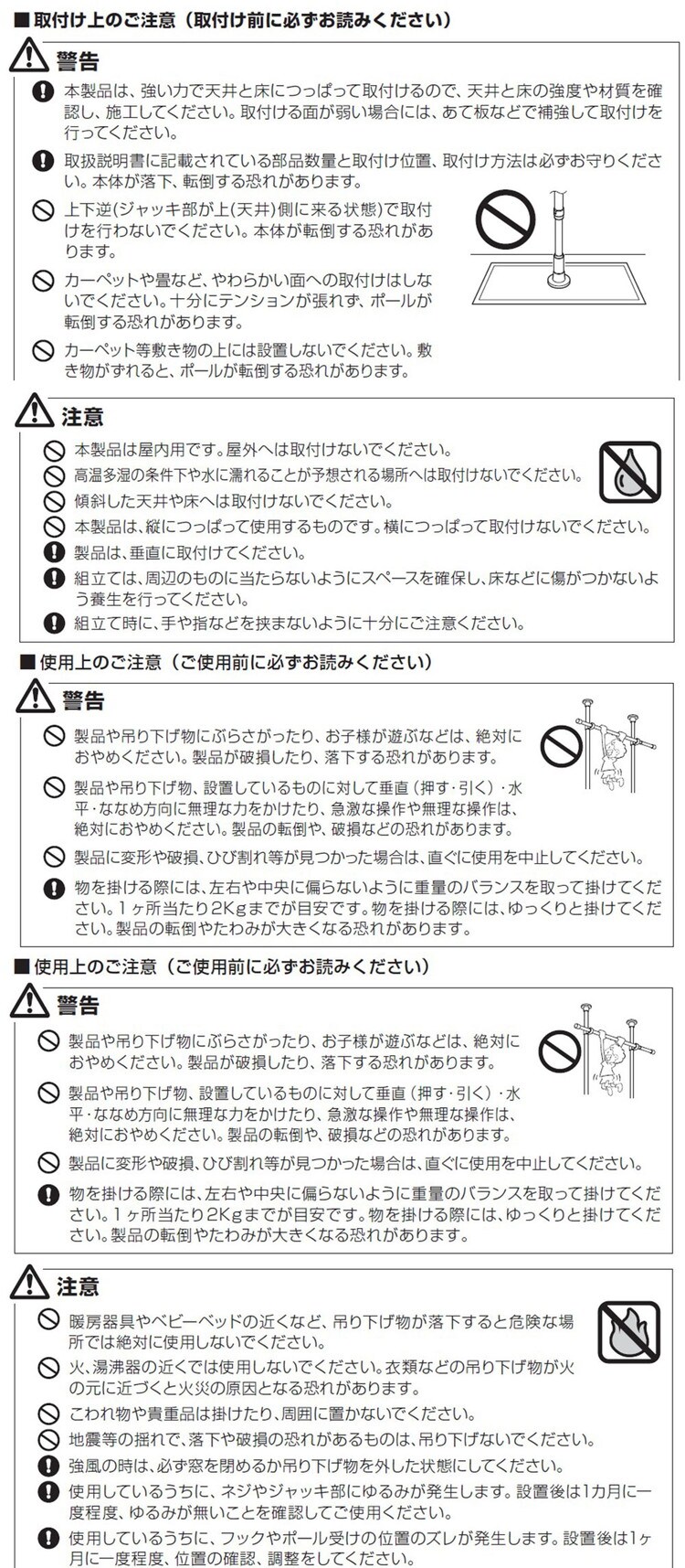 つっぱり棒を設置する際は、必ず取扱説明書をよく読んでから設置してください。