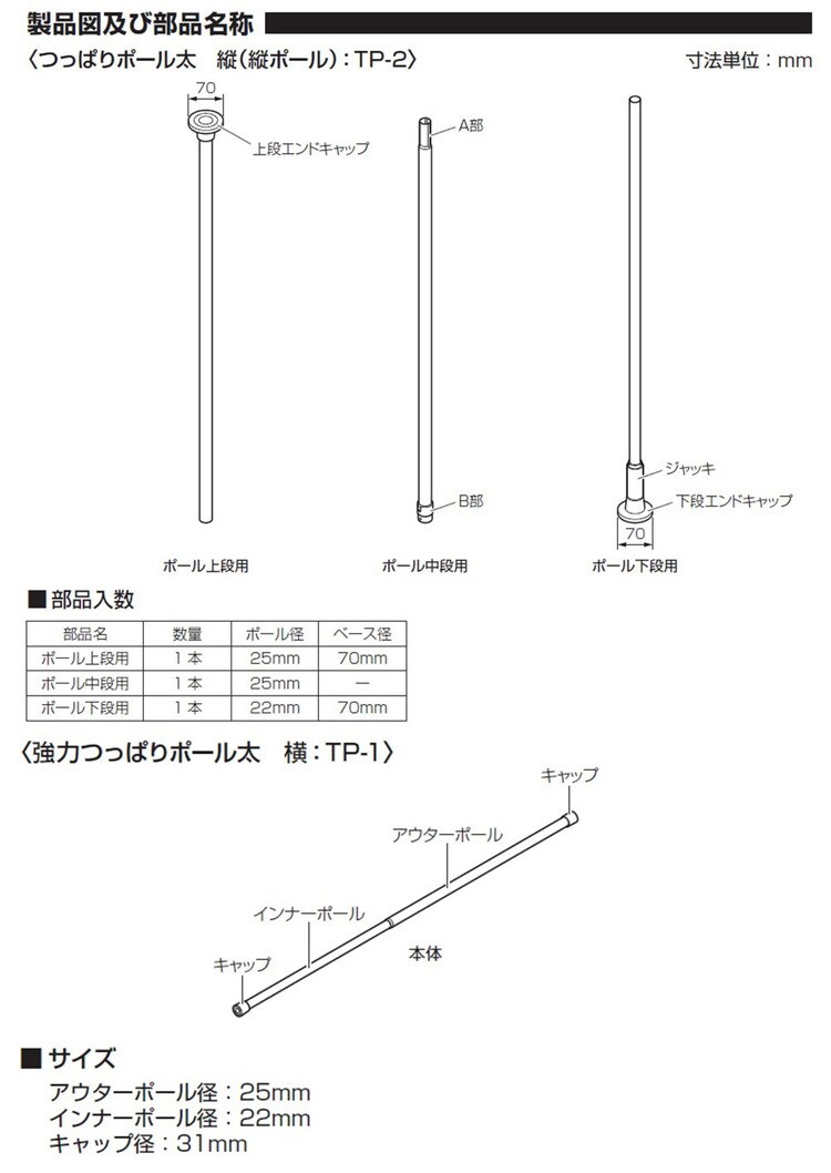 ・横ポール3.0m×1本