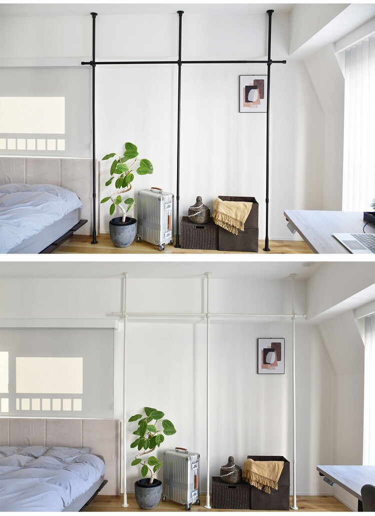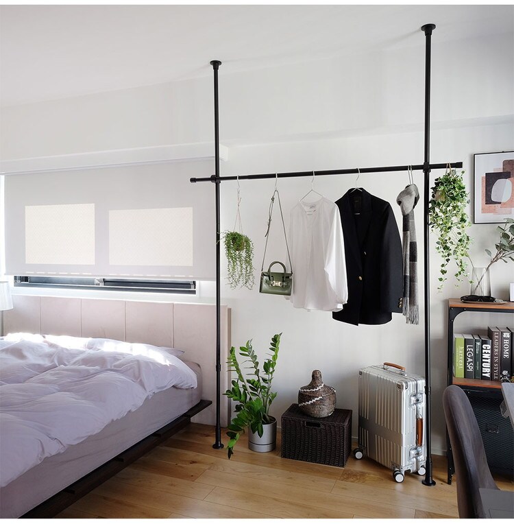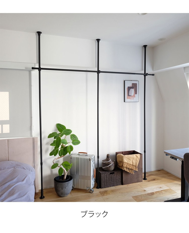 ・縦方向のつっぱり棒と横方向のつっぱり棒を組み合わせて作るハンガーラックです。