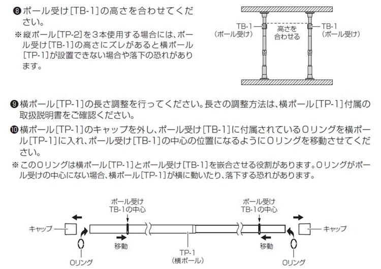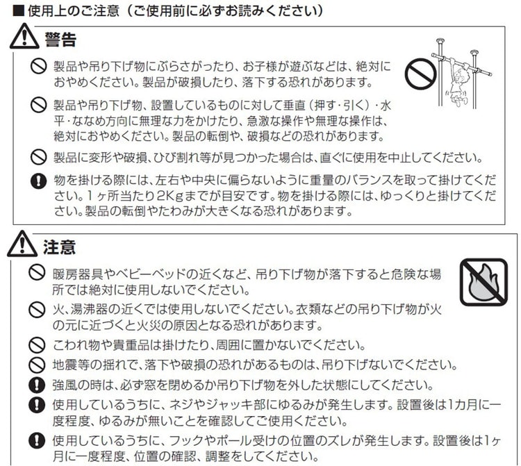 つっぱり棒を設置する際は、必ず取扱説明書をよく読んでから設置してください。